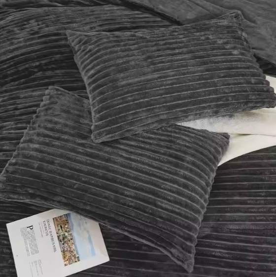 Factory Wholesale Comforter Set Soft Striped Fleece Warm Fluffy Bedding Luxury Fuzzy Heavy Bed Set for Winter with Pillow Case